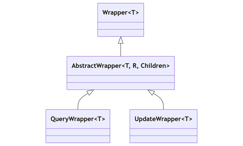 常用的构造器有两类,一类是用于查询的条件构造器 QueryWrapper ,一类是用于更新的条件构造器 UpdateWrapper ,关系如下所示。